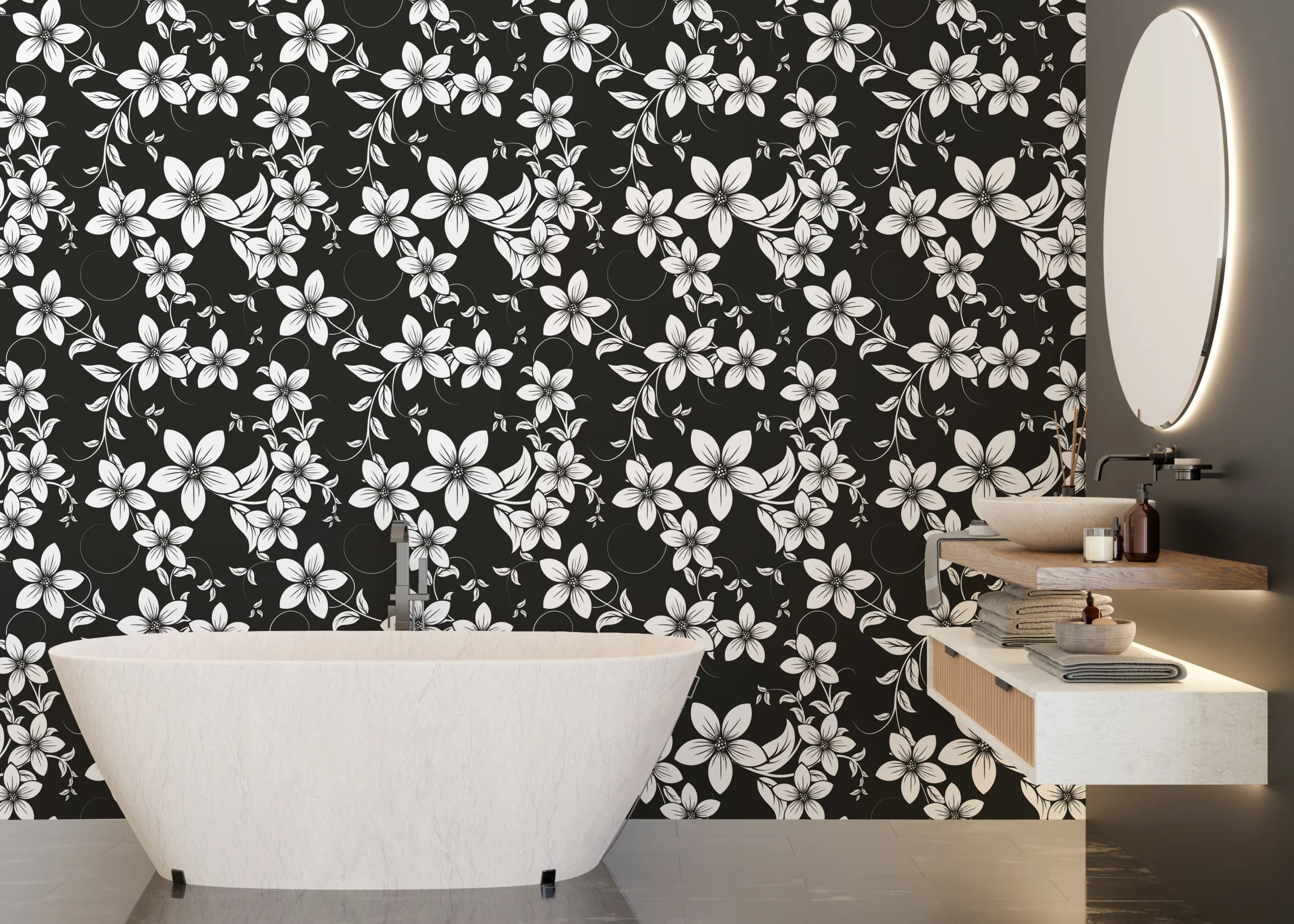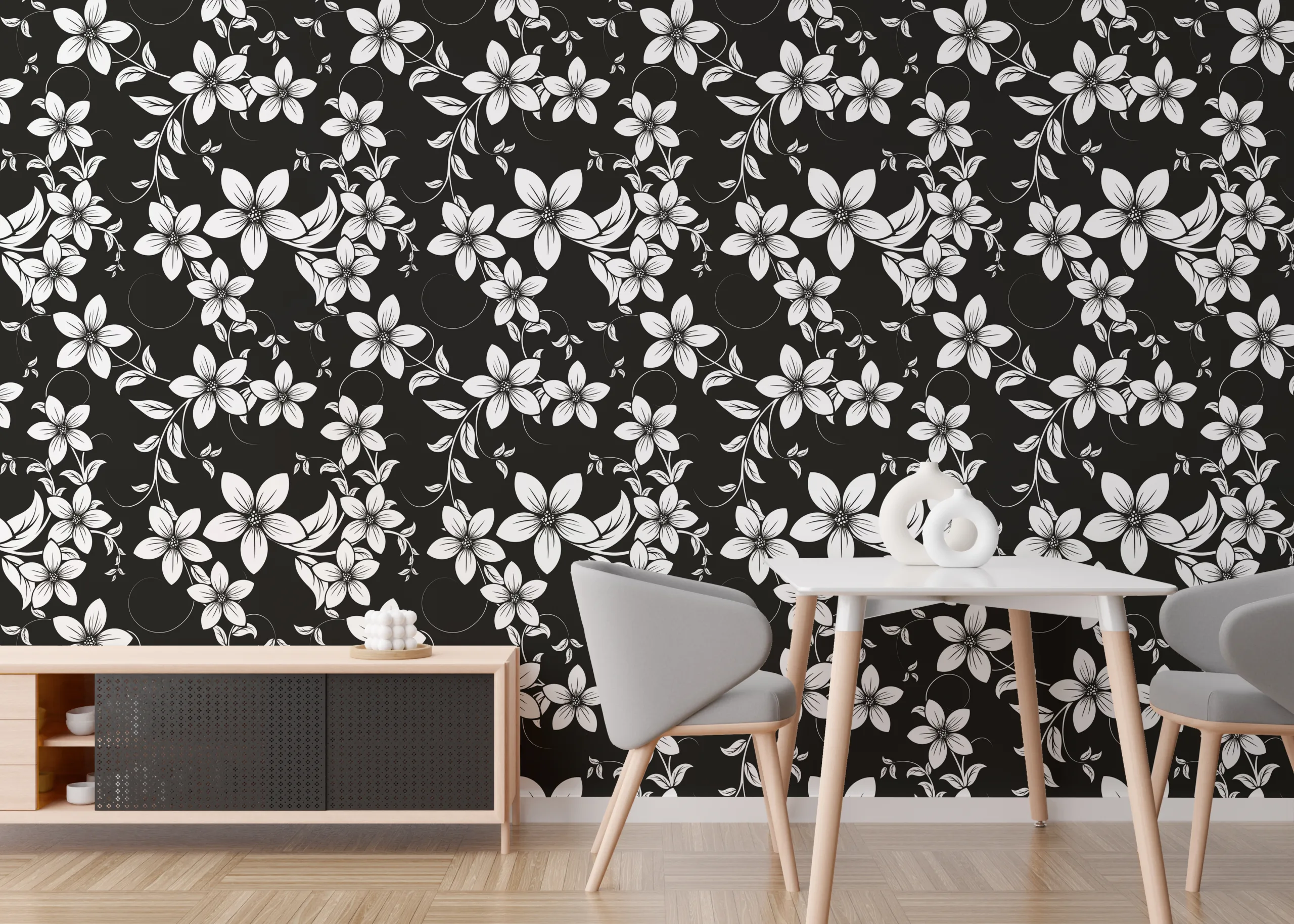 Decorate Your Home Wall with Our Exclusive Vintage Black and White Floral Wallpaper!