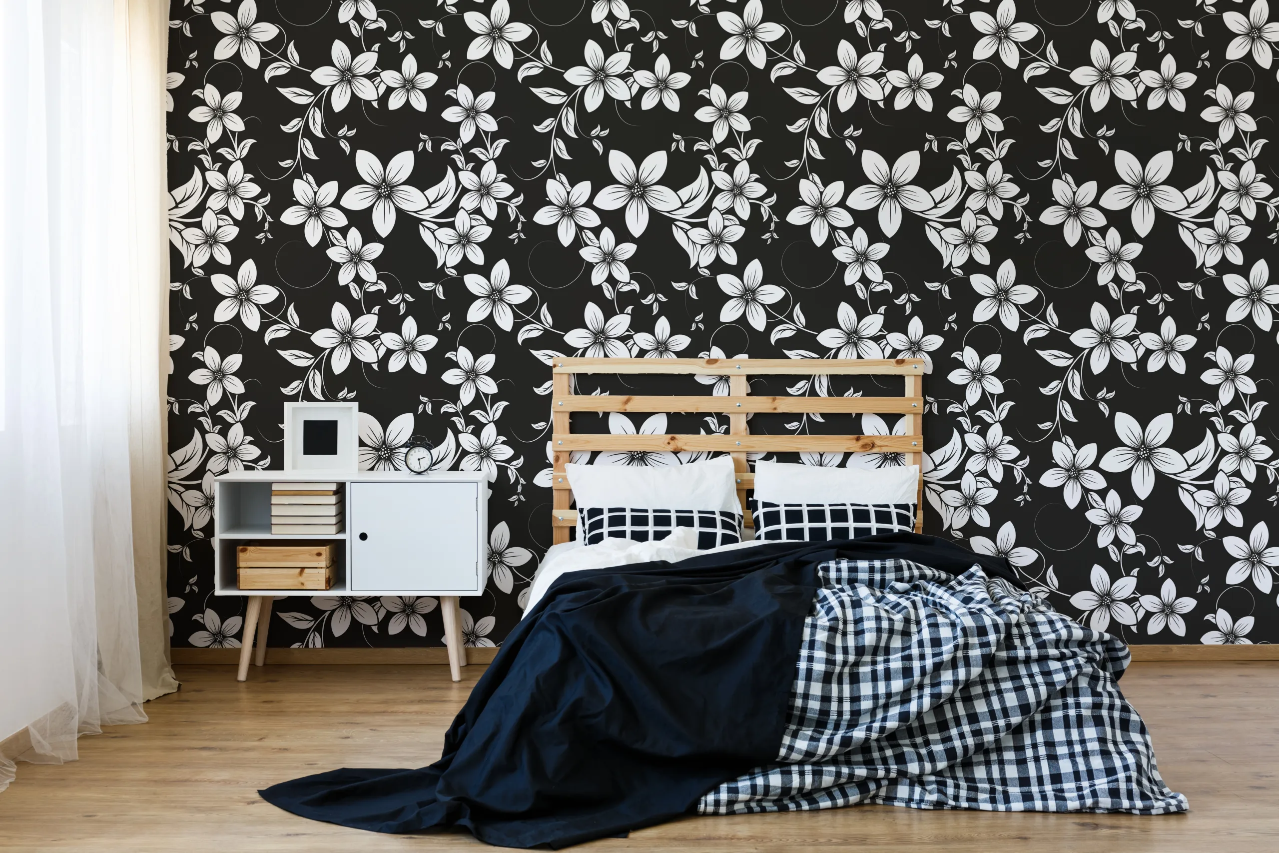- Every inch of this wallpaper speaks to the poetry of nature—subtle vines curving through elegant flowers, all rendered in rich monochrome detail.