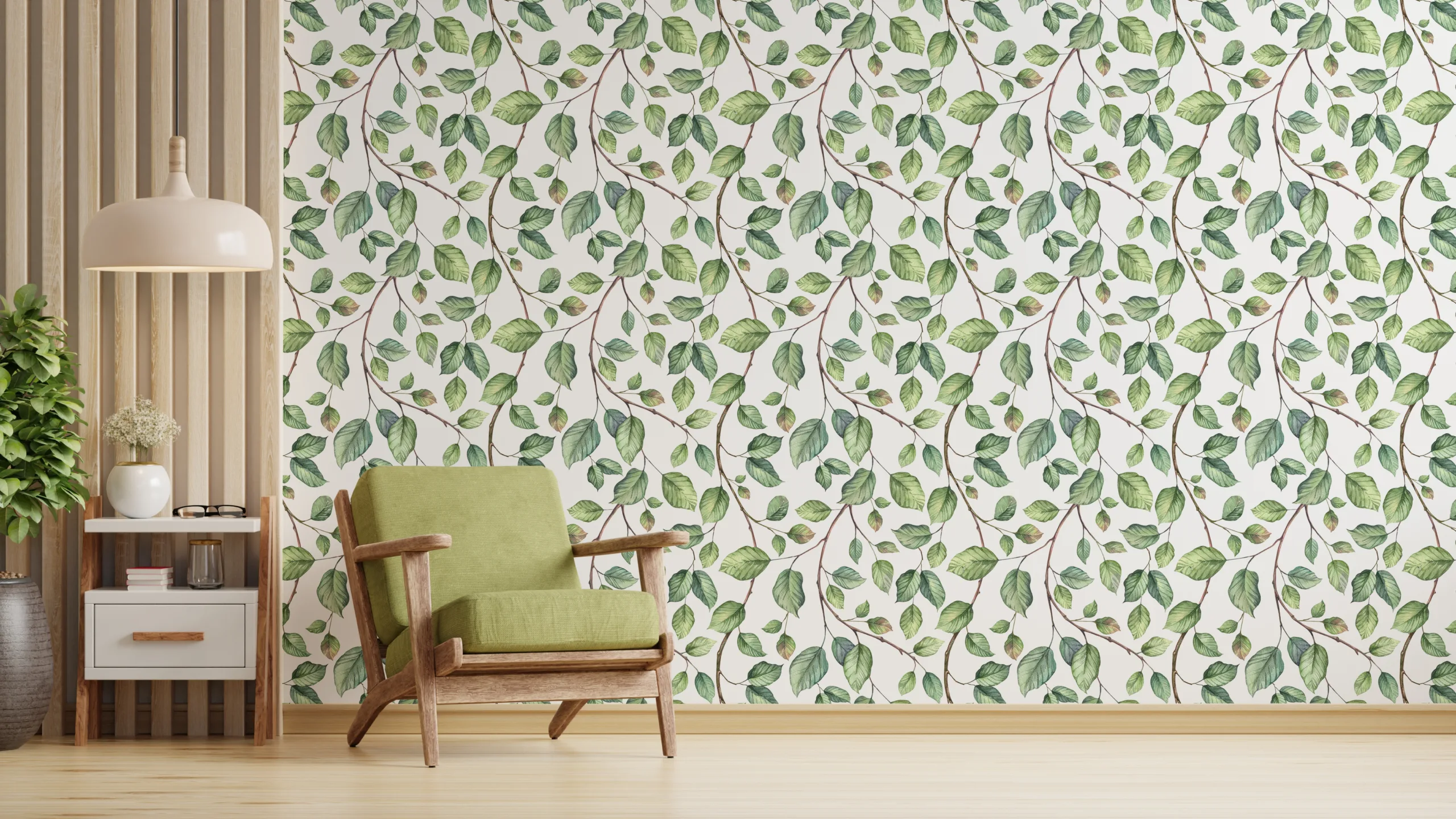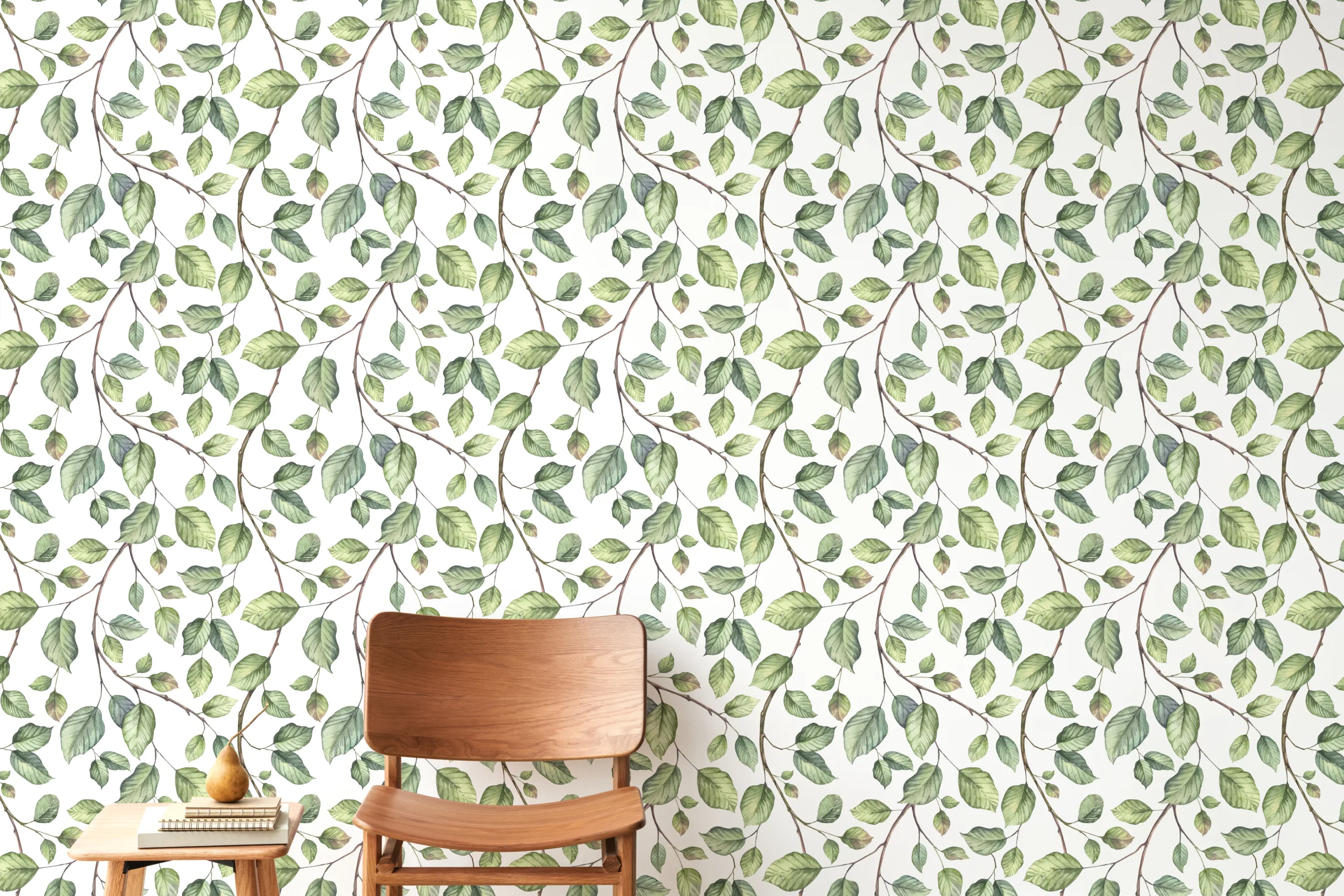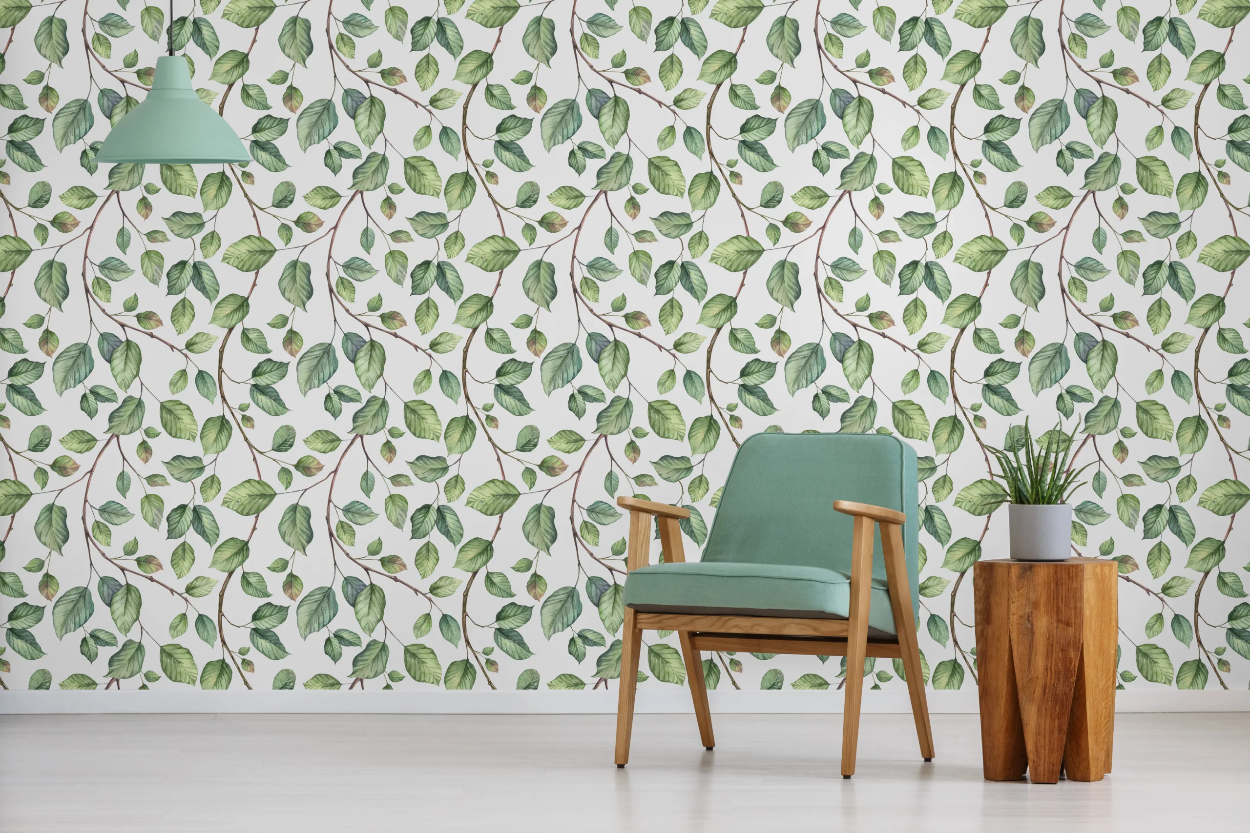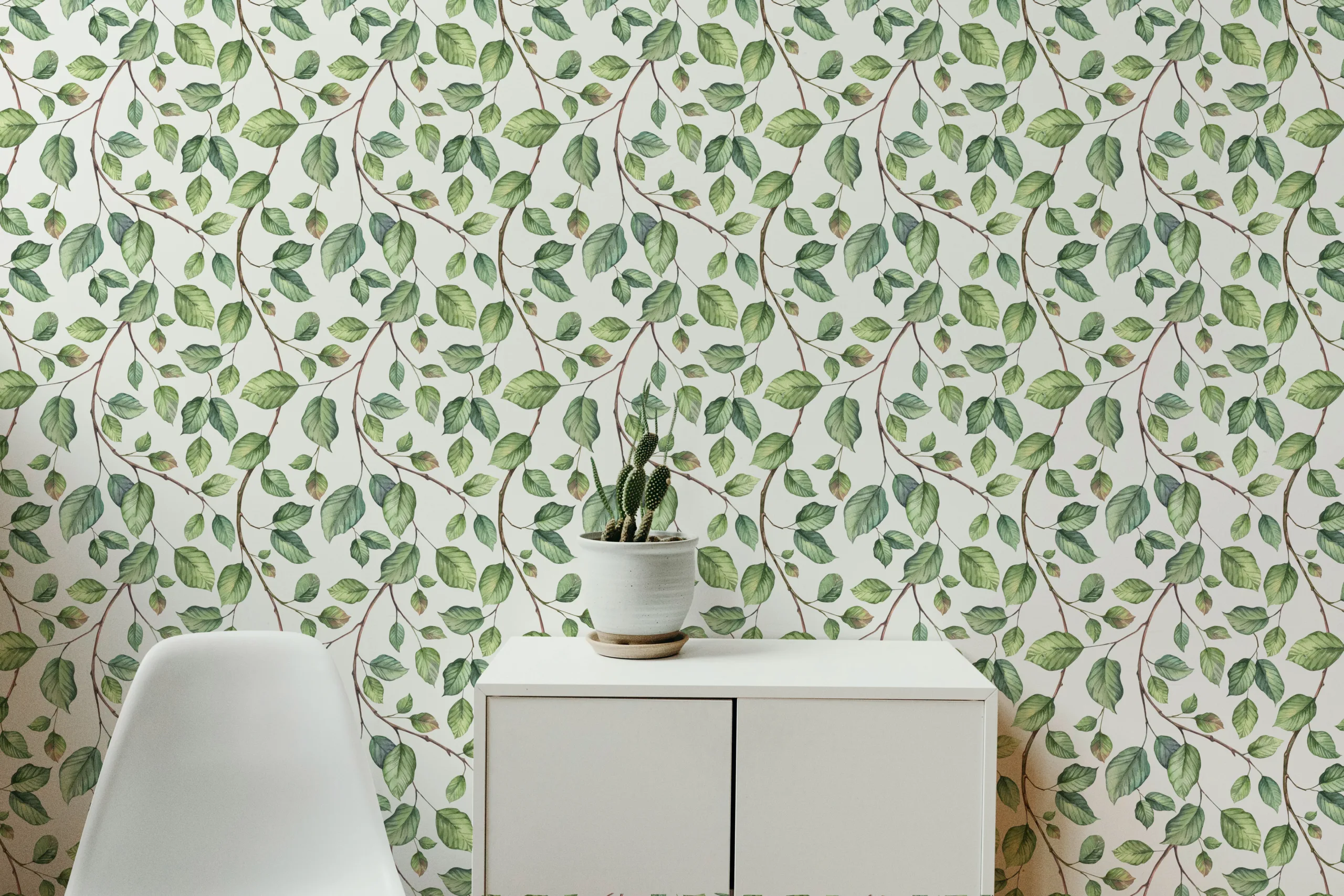 Botanical Leaf Vine Decor | Green Nature Watercolor Peel and Stick Wallpaper