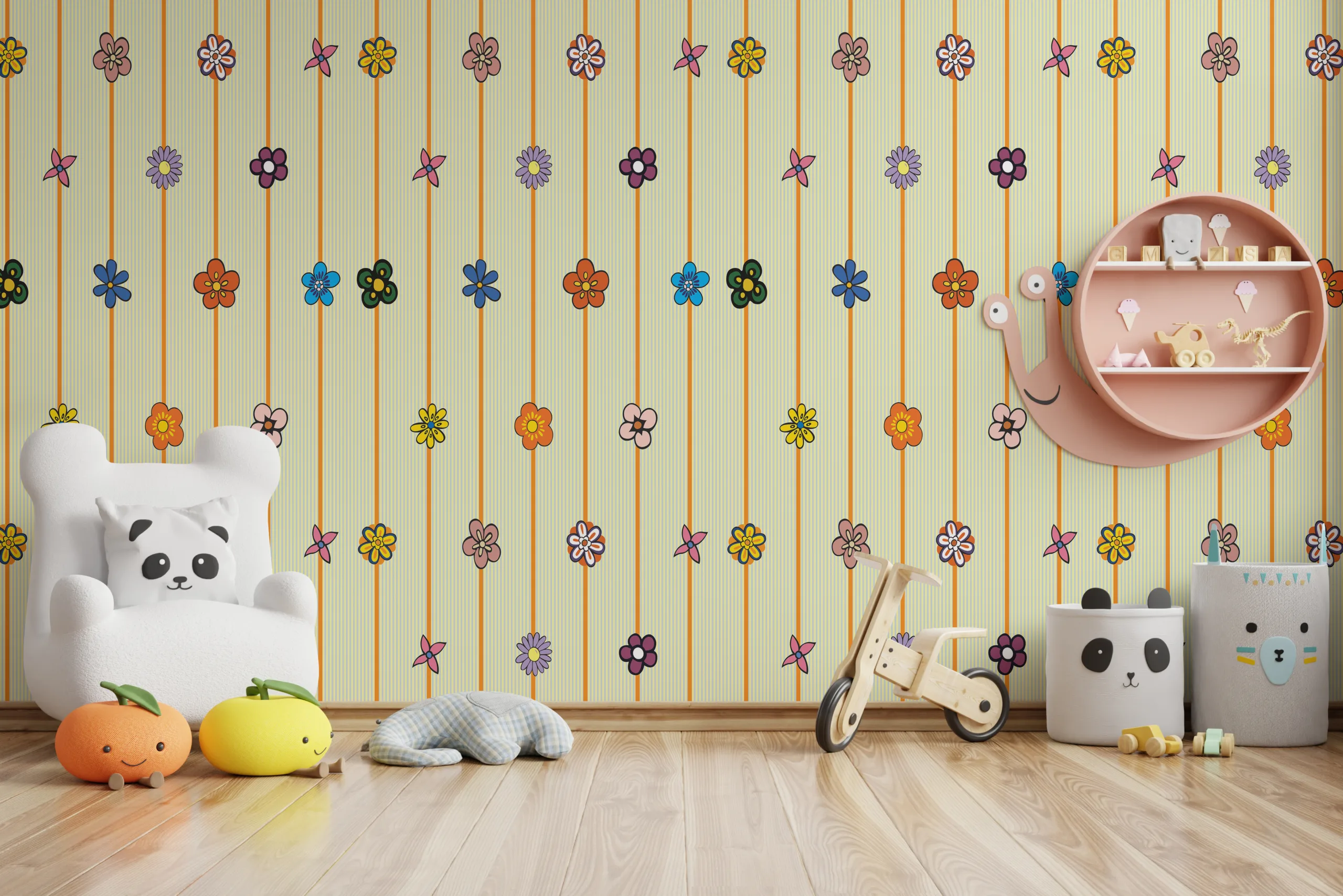 Floral Stripe Wallpaper | Yellow Kids Room Cute Peel & Stick Decor
