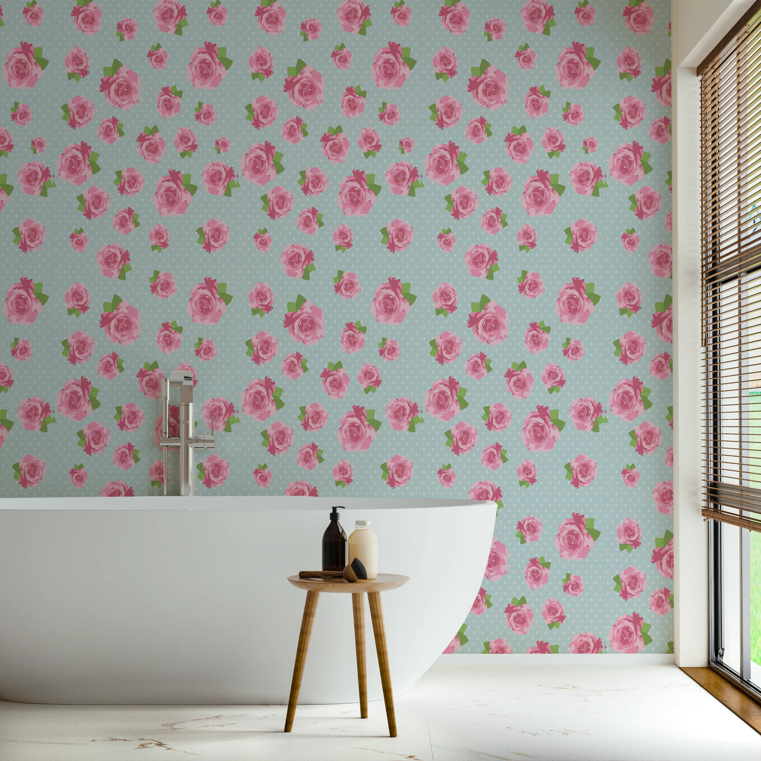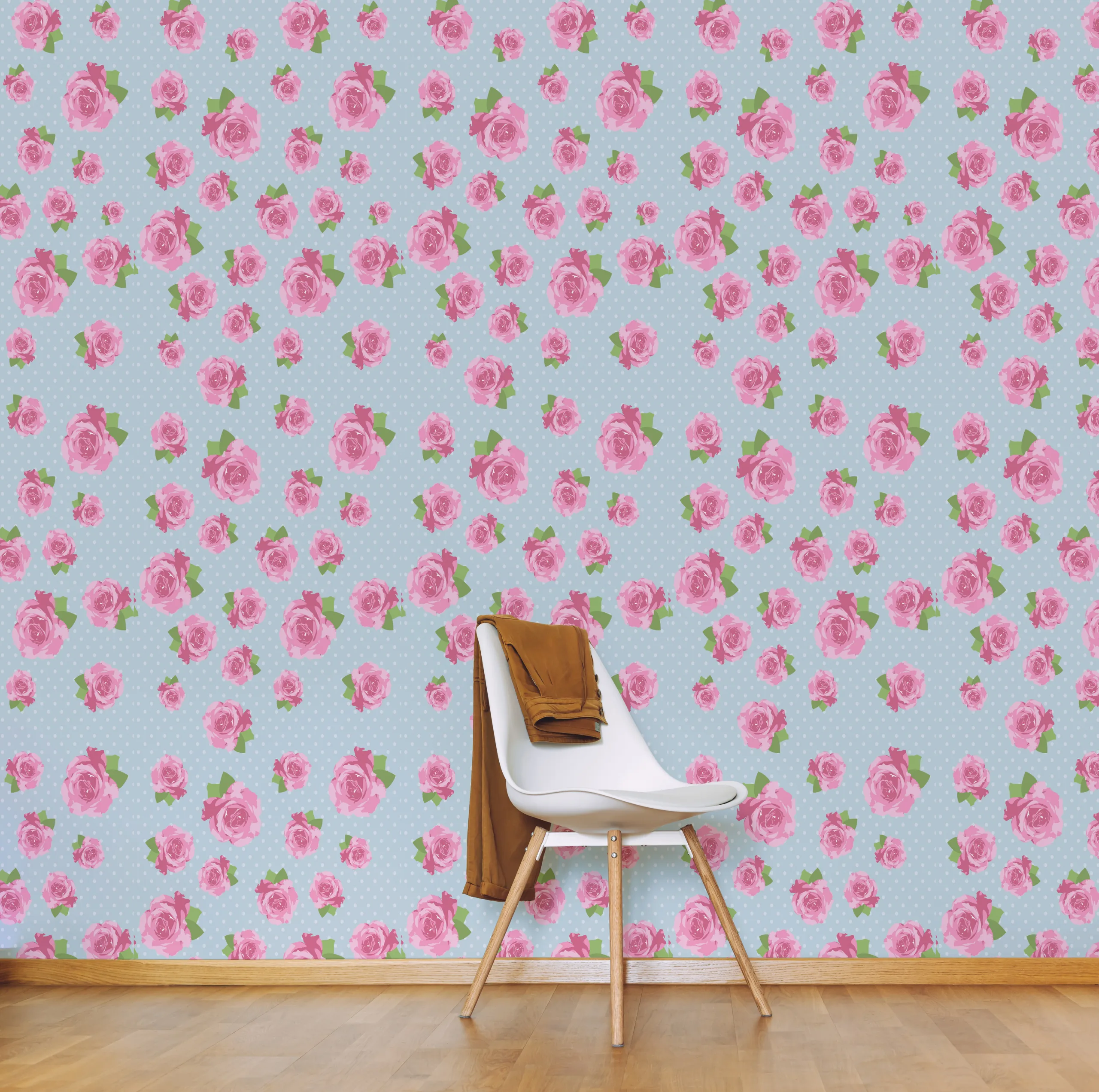 Pink Rose Floral Wall Decor | Blue Vintage Peel and Stick Wallpaper