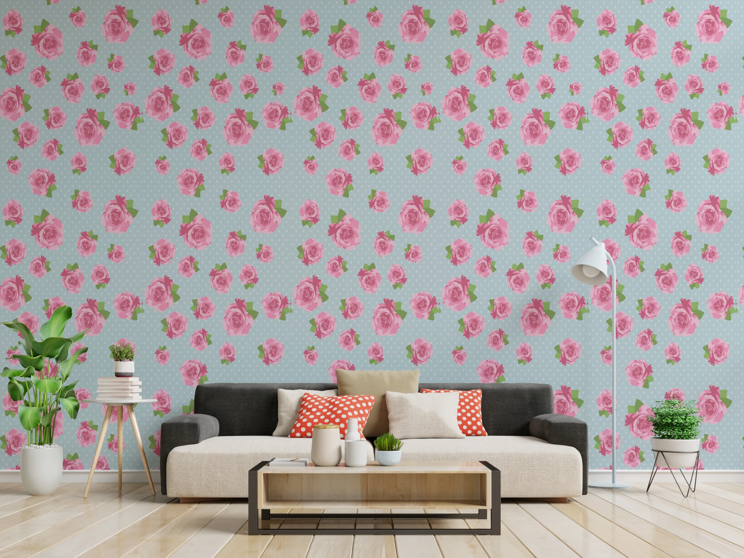 Soft floral accent wallpaper with blue and pink patterns for modern homes, offering a cozy removable cottage bedroom design for elegant interiors.