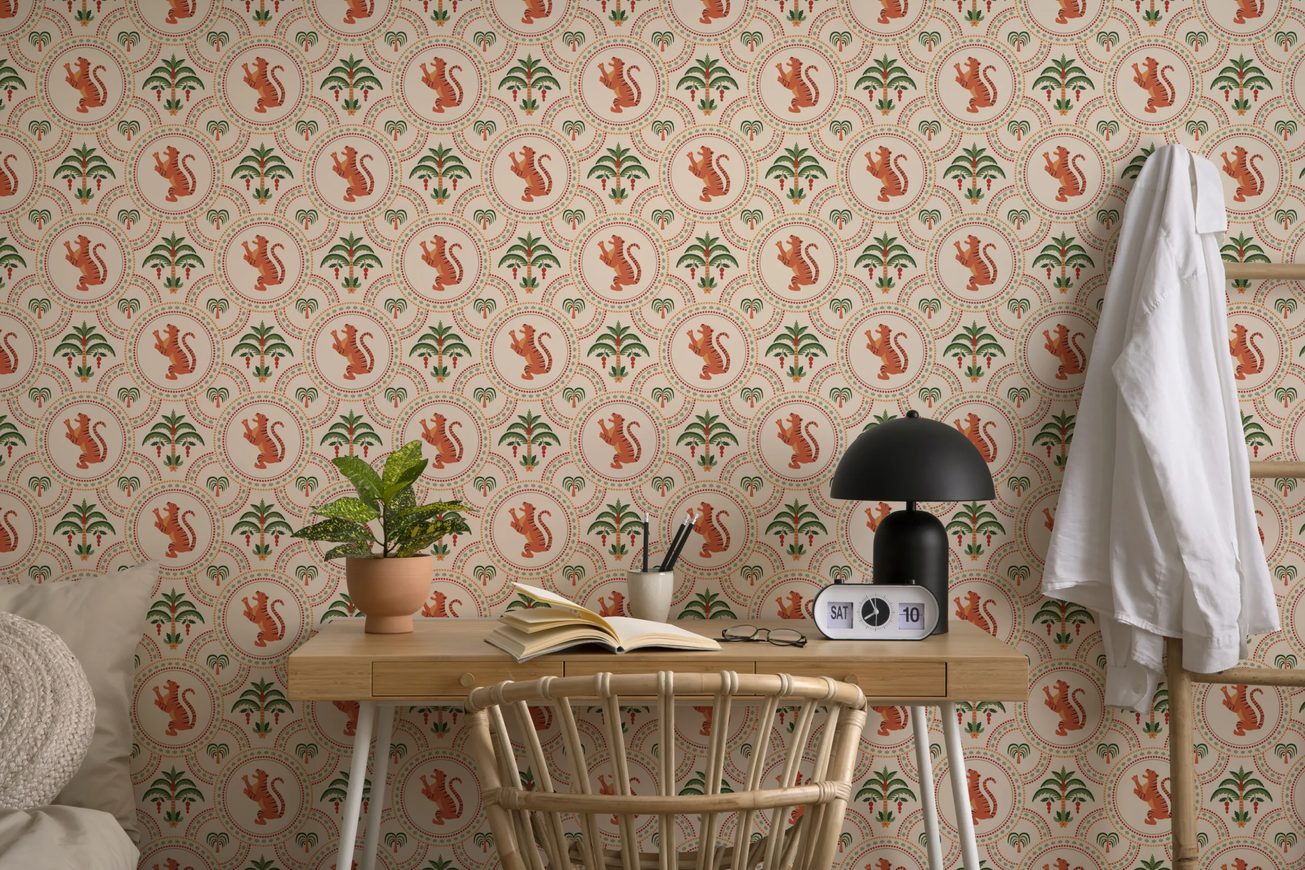 Tiger Jungle Peel and Stick Wallpaper | Terracotta & Green Safari Art | Vintage Style | Kids Room